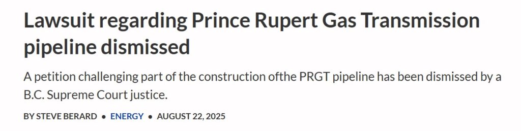 The three groups — the Skeena Watershed Conservation Coalition (SWCC), the Kispiox Valley Community Centre Association (KCCA), and the Kispiox Band council — alleged in their petition that the BCER unlawfully allowed construction to start on section 5B of the pipeline.