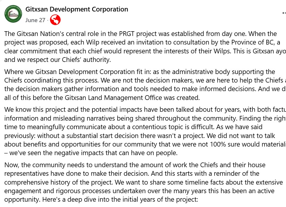 Talk about dropping clues about who radical anti pipeline people are? The same names keep repeating themselves by Tides Funded organizations in our local communities. All this self righteous indignation by people trying to bully their own nation. Take particular note of how many of them are directly or indirectly connected to the Skeena Watershed Conservation Coalition or the Kispiox Valley Community Centre Association (KCCA) or the Kispiox Band Council.Remember those names, watch how often they show up pretending to be the majority of Gitxsan Nation