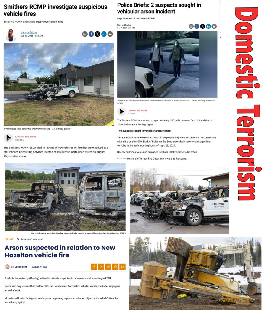 Is Kispiox the centre of operations that are terrorizing local communities? It could be argued that without evidence, there is no proof to connect the SWCC or Dogwood BC the Kia Nagata Chapter or the or the Kispiox Valley Community Centre Association (KCCA) or the Kispiox Band Council to the acts of terrorism that have taken place over the last few years. It could also be said that the lack of evidence also does not prove their innocence either, one thing we are sure of, even without evidence, we have yet to hear about any other group that just happens to pick pipeline connected business as a target for terrorist attacks. We should also acknowledge a small group with strong ties to the SWCC resides in Gitanyow. Even the so called and Lax’yip Firekeepers are a co-creation of the same 3 Kispiox organizations, and the so called youth are almost all over 30 years of age.