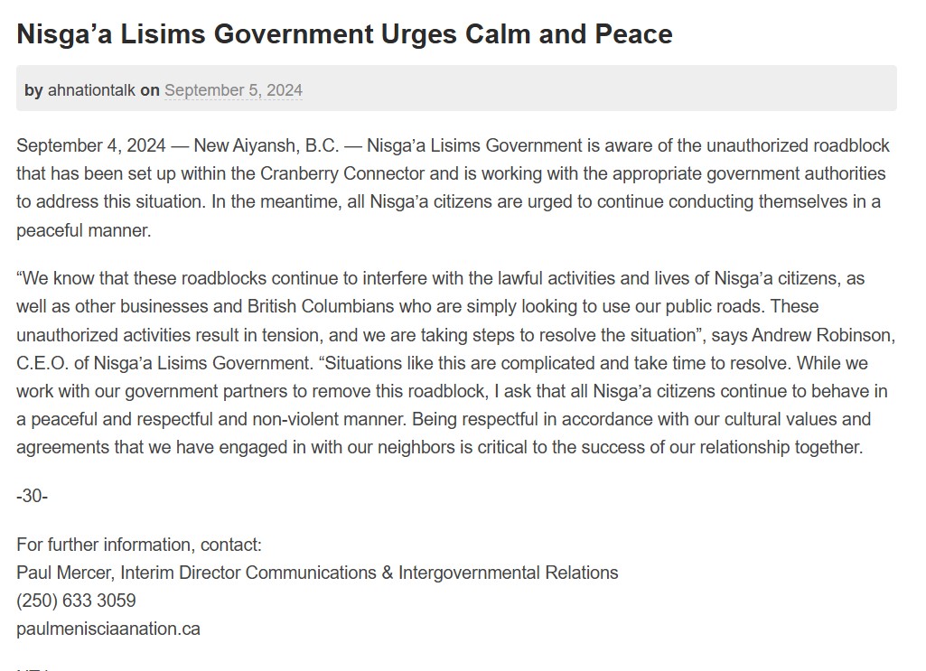 Dogwood BC is an agitator here, possibly funding the confrontation. Contrary to what the video says, the blockade is on Nisga’a Land. (see evidence here) This video was posted by BC Dogwood with every intention of misleading the public regarding the correct ownership of the land here in question. A shameful display of intentionally lying by Dogwood BC while getting paid by Americans to stop Canada from developing its resources.