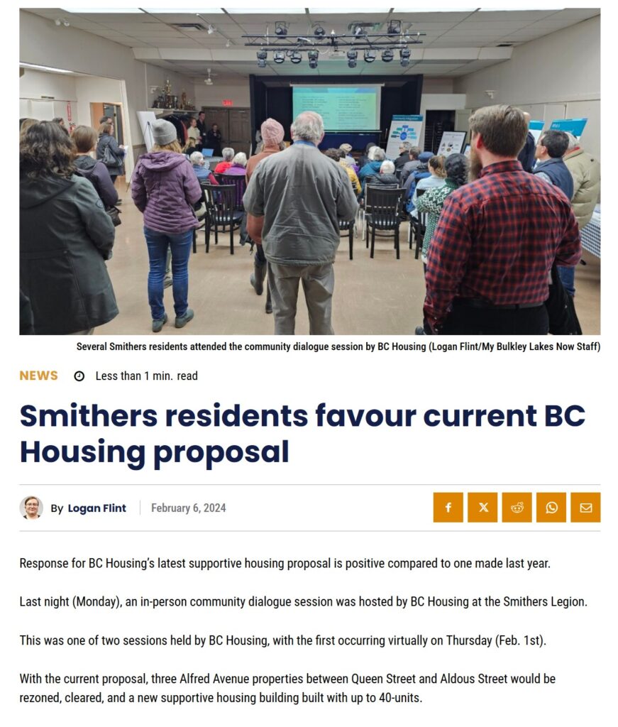 Long story short, the residents of Smithers said NO to expanding Smithers as a town “hell bent on housing addicts” from all over the north. Smithers always has and always will support those in need of housing, but draw the line on housing a problem goverment refuses to deal with.