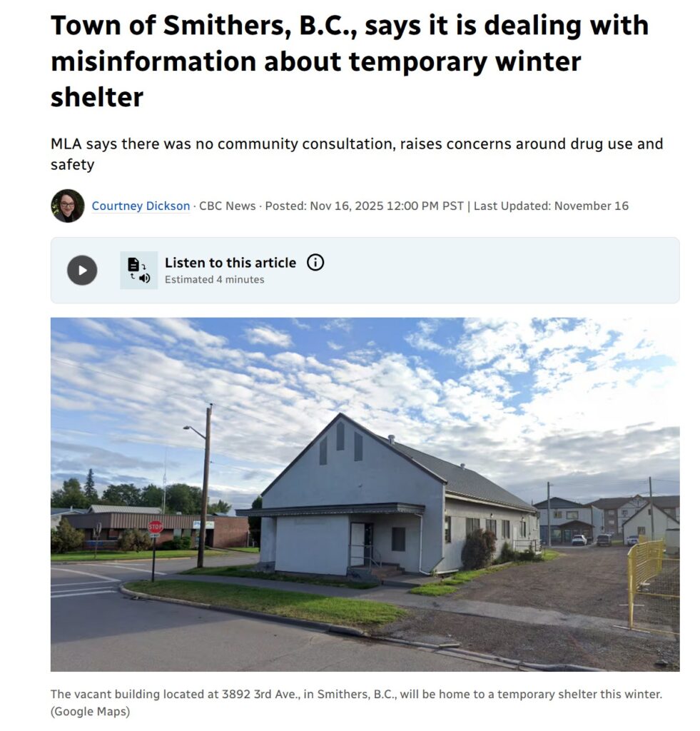 Gladys Atrill  opened the Public Open Meeting – Monday, November 17th  regarding the Third Avenue Shelter with the following comments, “our purposes is to ensure everyone has clear accurate information directly from BC Housing and the Bulkley Valley Harm Reduction Society.” Unfortunately nothing like that actually occurred. We covered a lot of evidence in this article, so its a long one, but its also what the Mayor of the Town of Smithers is trying to cover up and hide from the public.