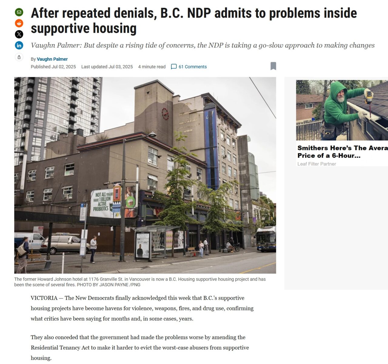 Attention: Smithers Mayor Gladys Atrill – As recently as July this year, the BC NDP admit B.C.’s supportive housing projects have become havens for violence, weapons, fires, and drug use, confirming what critics have been saying for months and, in some cases, years.