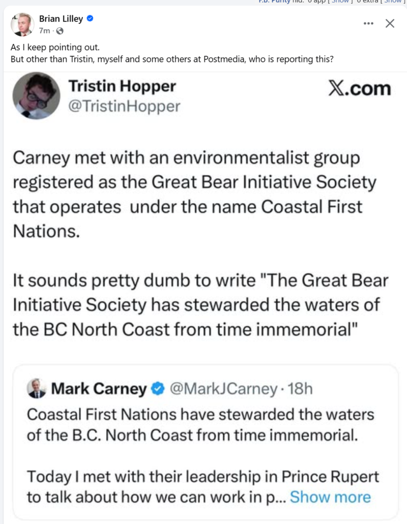 The second big lie by the BCNDP and Mark Carney’s Liberals is that the organization’s name is NOT “Coastal First Nations” it is registered under the name “Great Bear Initiative Society”