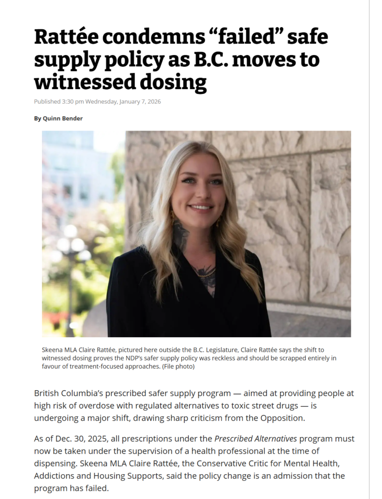 Rattée condemns “failed” safe supply policy as B.C. moves to witnessed dosing