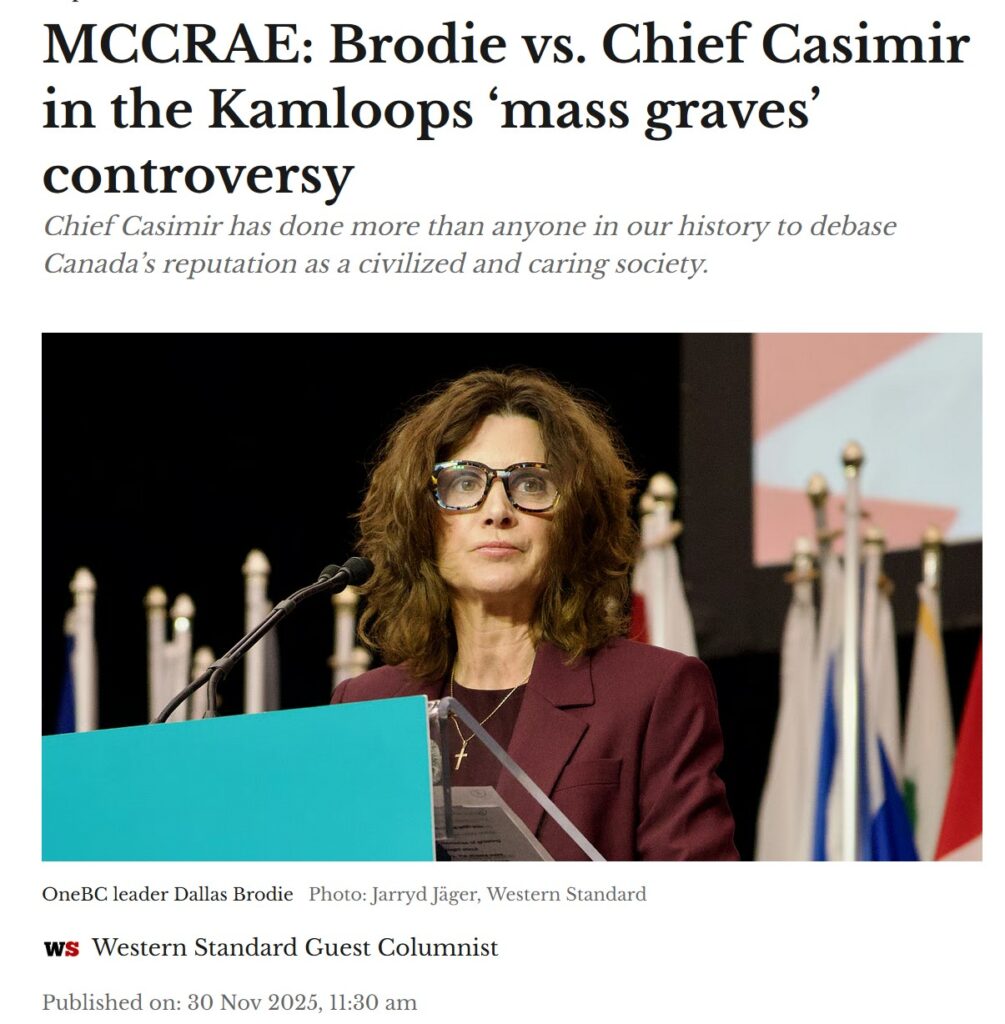 MCCRAE: Brodie vs. Chief Casimir in the Kamloops ‘mass graves’ controversy (added 12/01/25)